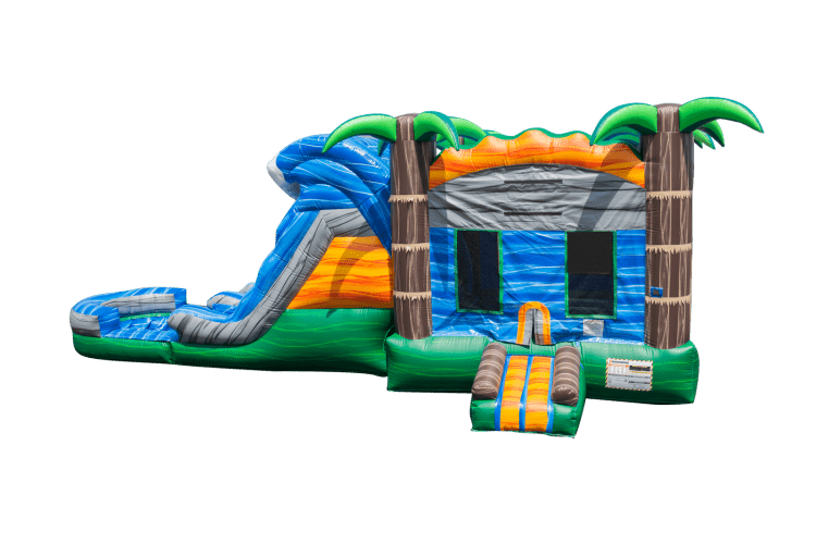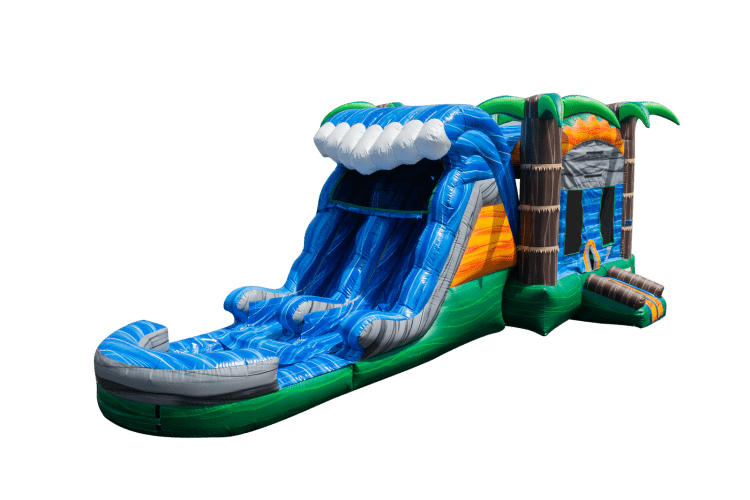 Why book THIS unit?Large wave-themed bounce house combo featuring a big slide and splash pool..