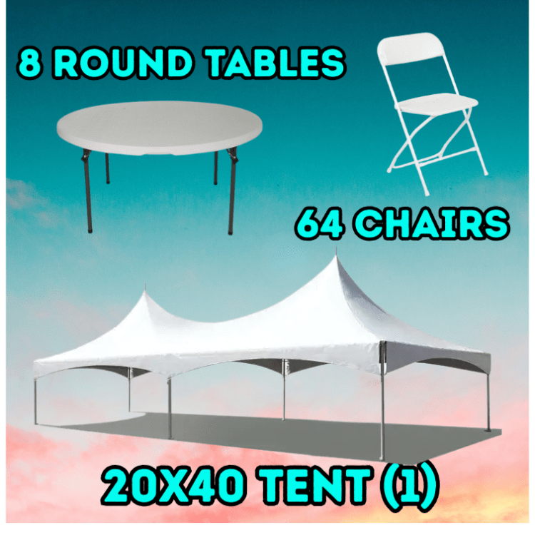 8ft Tables20×40 Tent / Round Tables / Chair Package:8ft Tables1Dropdown83185571_25646290100CHECK OUT OUR ACCESSORIES & OTHER ITEMS BELOW!!!