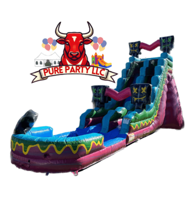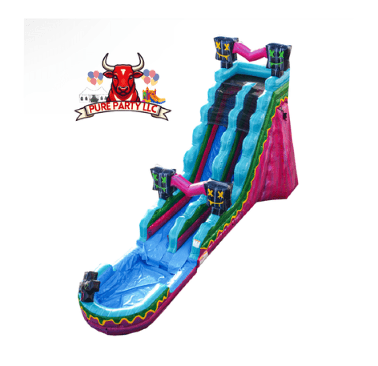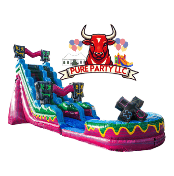 Why book THIS unit?21ft tall with neon gamer colors, "X" smileys, and a large splash pool..